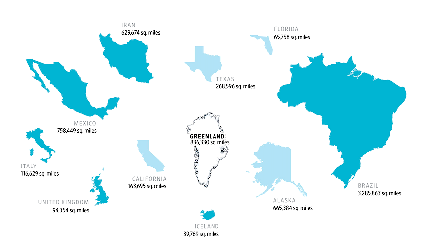 Even so, Greenland is big. It is larger than California and Mexico, and almost four times as large as Texas.
