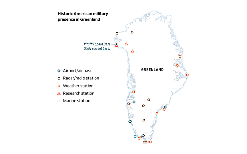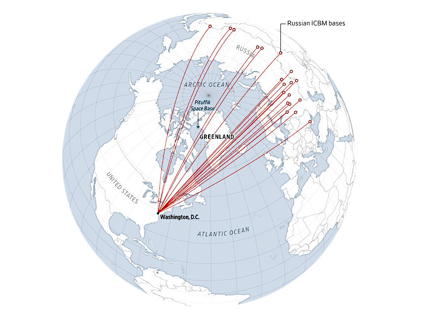 If Russia or China were to fire intercontinental ballistic missiles at the U.S., many would likely cross over Greenland. That is why the U.S. has a Space Force base on the island, scanning the skies for potential attacks. The U.S. and NATO are considering adding more missile-detection equipment on Greenland and nearby.